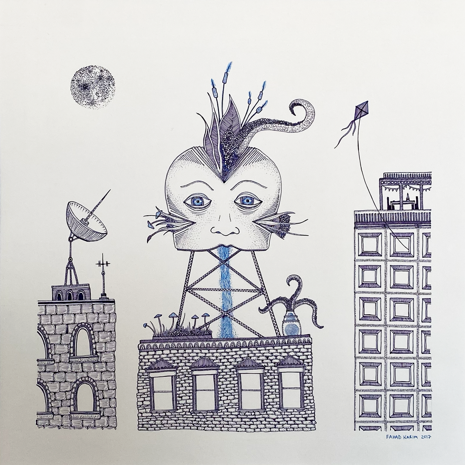 Alan Ki Aankhen is an exploration of other-worldly cityscapes in the visual aesthetic of my distinct style with ink on paper. The title, translated as Alan’s Eyes, alludes to Alan Turing’s machine intelligence test - a thought experiment foreshadowing a moment in which we can no longer differentiate between the real and the artificial. Though first proposed in 1950, the topic feels especially relevant today, as even our creative practices are being carried by shifting technological tides.